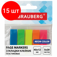 Комплект 15 шт, Закладки клейкие BRAUBERG неоновые, пластиковые, 45х12 мм, 5 цветов х 20 листов, на пластиковом основании, 122706: сравнение цен, характеристики, фото, актуальное наличие и цены.