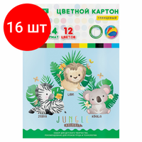 Купить Комплект 16 шт, Картон цветной А4 мелованный EXTRA, 24 листа 12 цветов, в папке, BRAUBERG KIDS, 200х290, Джунгли, 115158 с доставкой по всей России.