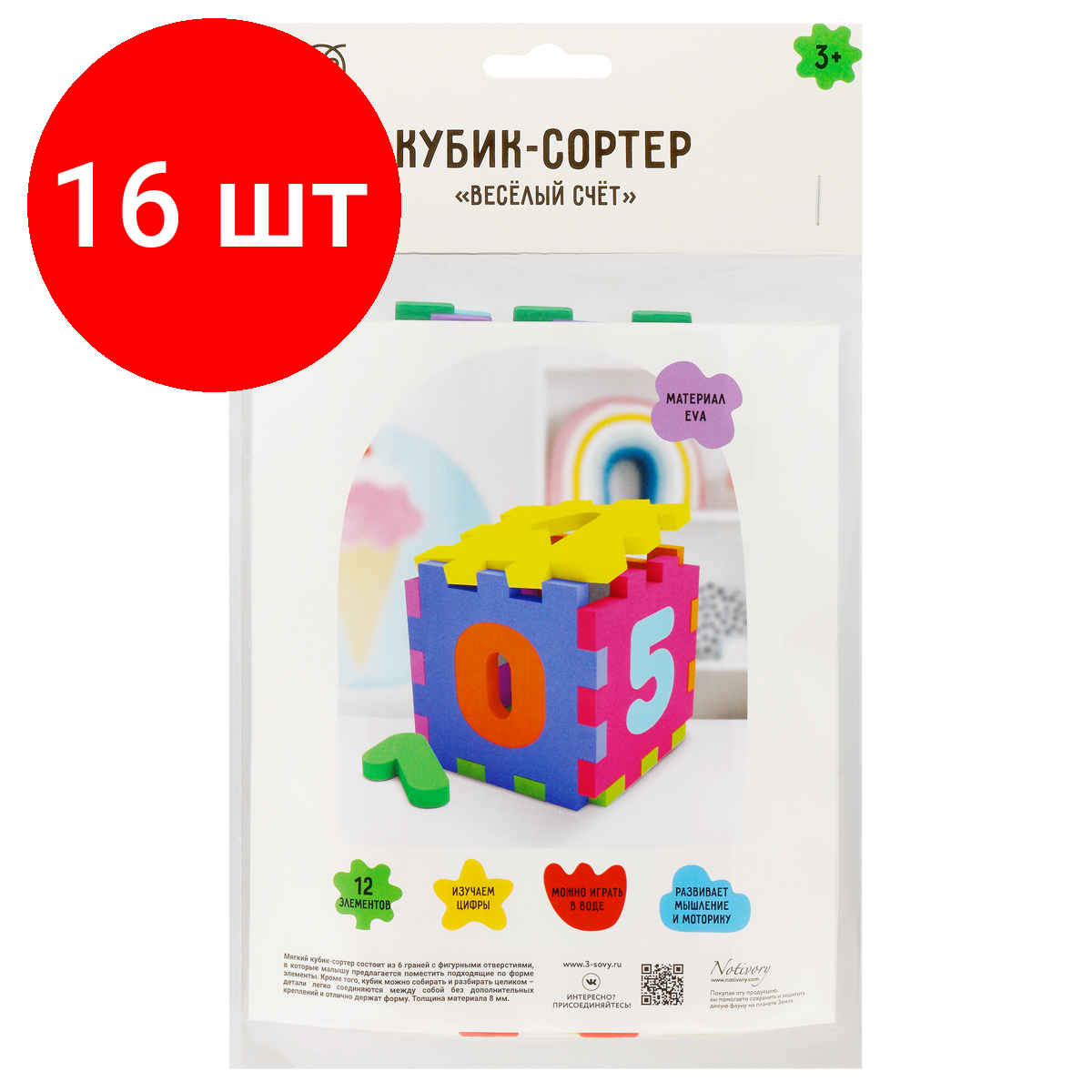 Комплект 16 шт, Развивающая игрушка ТРИ совы Кубик-сортер «Веселый счет», EVA, 6 пазлов, 12 элементов: сравнение цен, характеристики, фото, актуальное наличие и цены.