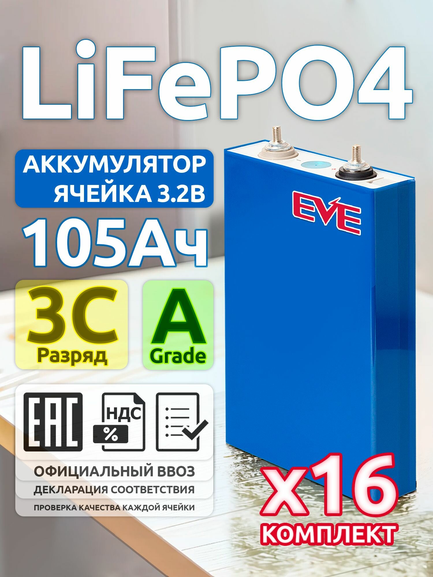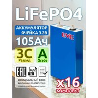 Купить Комплект 16шт — литиевая аккумуляторная батарея EVE LF105 3,2В 105Ач, LiFePO4 ячейка с доставкой по всей России. Комплект 16шт — литиевая аккумуляторная батарея EVE LF105 3,2В 105Ач, LiFePO4 ячейка: сравнение цен, характеристики, фото, актуальное наличие и цены.
