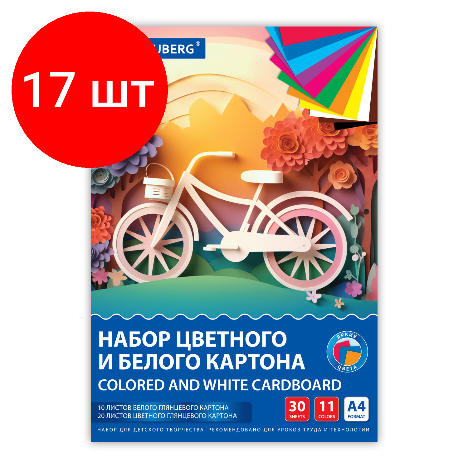 Комплект 17 шт, Набор цветного и белого картона мелованный A4 (белый 10 листов, цветной 20 листов, 10 цветов), BRAUBERG, 116423: сравнение цен, характеристики, фото, актуальное наличие и цены.