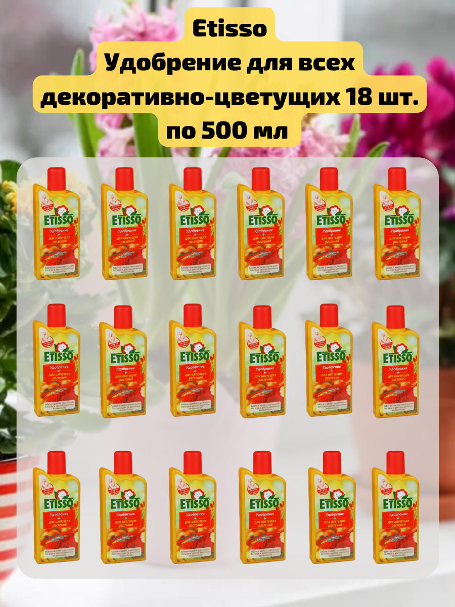Купить Комплект 18 шт. Удобрение жидкое для любых цветущих комнатных и балконных растений, 500 мл. Etisso с доставкой по всей России. Комплект 18 шт. Удобрение жидкое для любых цветущих комнатных и балконных растений, 500 мл. Etisso: сравнение цен, характеристики, фото, актуальное наличие и цены.