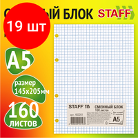 Купить Комплект 19 шт, Сменный блок к тетради на кольцах, А5, 160 л., BRAUBERG, «Белый», 403261 с доставкой по всей России.