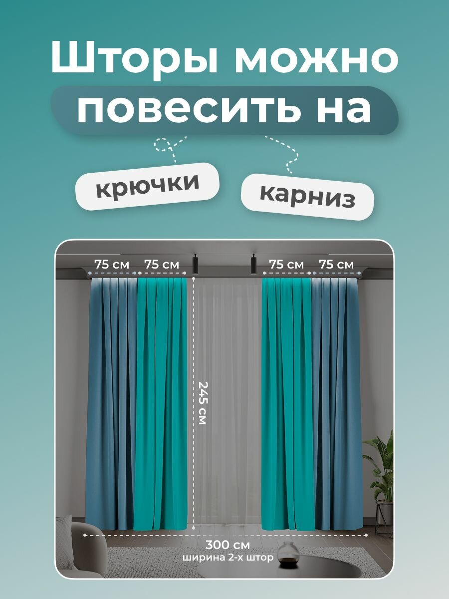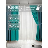 Комплект 2 двухцветные шторы по 150 x 245 см для гостиной и спальни из плотного турецкого канваса, размер S: 300 x 245 см, бирюзовый, синий: сравнение цен, характеристики, фото, актуальное наличие и цены.