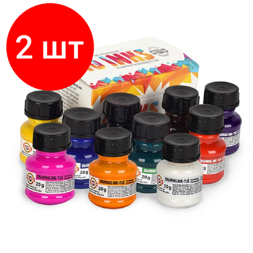 Купить Комплект 2 наб, Тушь акриловая плакатная KOH-I-NOOR флакон 20г х 10цв/наб, карт 01417S1001KK с доставкой по всей России.