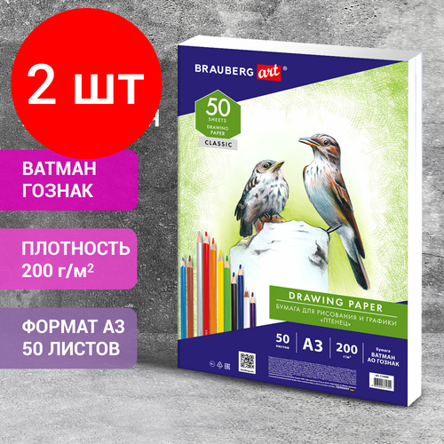 Купить Комплект 2 шт, Бумага для рисования А3, 50 л, 200 г/м2, ватман гознак, BRAUBERG ART CLASSIC, 114490 с доставкой по всей России. Комплект 2 шт, Бумага для рисования А3, 50 л, 200 г/м2, ватман гознак, BRAUBERG ART CLASSIC, 114490: сравнение цен, характеристики, фото, актуальное наличие и цены.