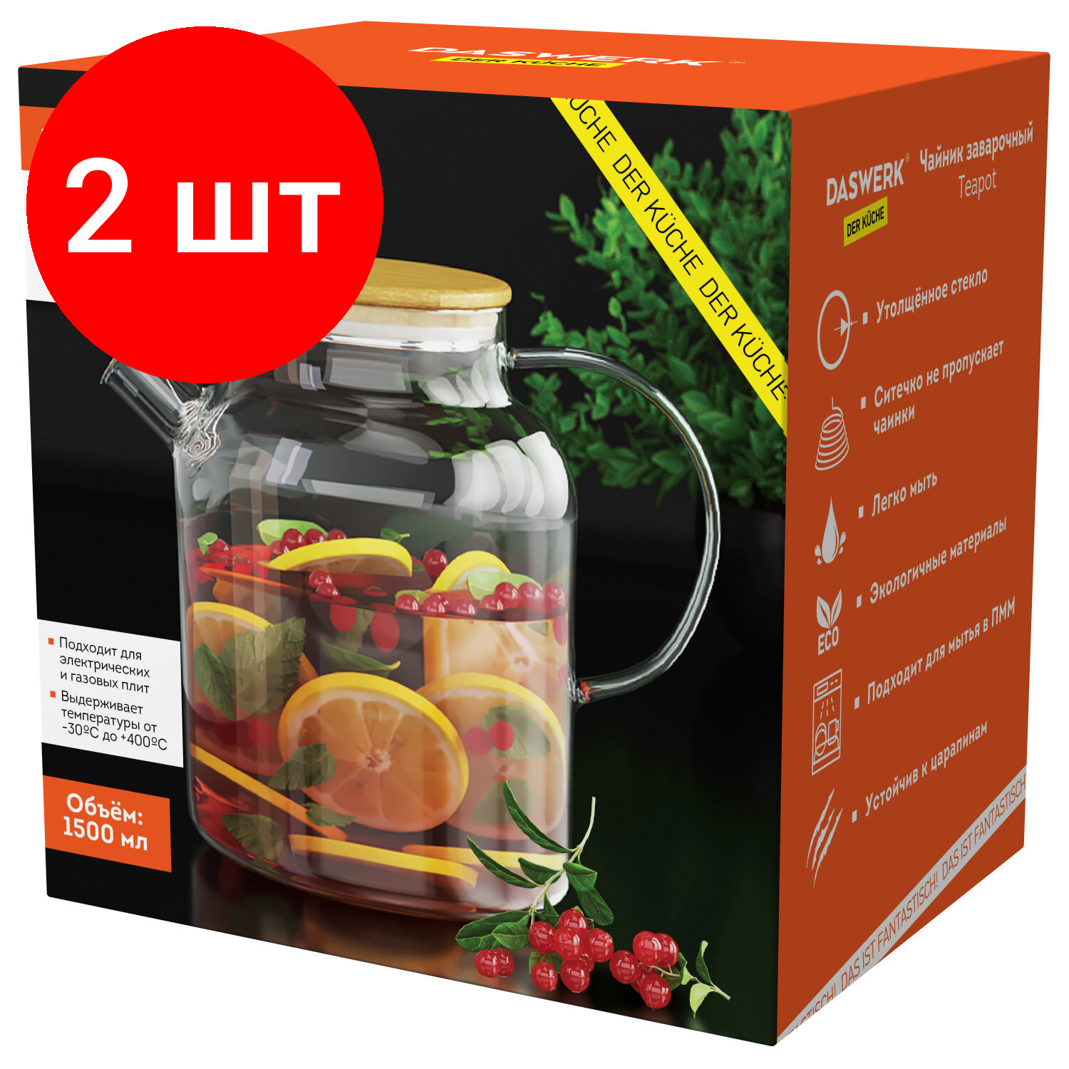 Комплект 2 шт, Чайник заварочный 1500 мл «Бочонок», жаропрочное стекло, спиральное сито, DASWERK, 608645: сравнение цен, характеристики, фото, актуальное наличие и цены.