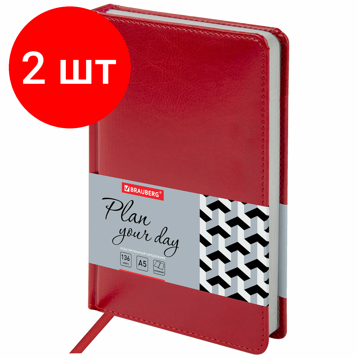 Комплект 2 шт, Ежедневник недатированный А5 138х213 мм BRAUBERG «Rainbow» под кожу, 136 л, красный, 111667: сравнение цен, характеристики, фото, актуальное наличие и цены.
