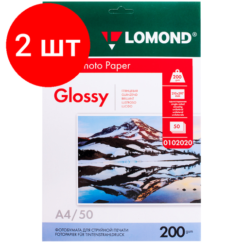 Купить Комплект 2 шт, Фотобумага А4 для стр. принтеров Lomond, 200г/м2 (50л) глянцевая односторонняя с доставкой по всей России.