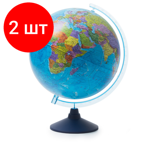 Внимание! Товар продается комплектом:[Глобус политический Globen, 32см, на круглой подставке] X 2 шт. Глобус с политической картой станет верным помощником в изучении географии, истории, экономики. Яркое лоскутное полотно политической карты даёт наглядное представление о современном политическом устройстве мира. Диаметр глобуса 32 см – достаточно крупный, чтобы использоваться в индивидуальном порядке и для демонстрации в учебных классах. Глобус выполнен из прочного высококачественного пластика с соблюдением всех современных технологий. Упакован в фирменную подарочную коробку.