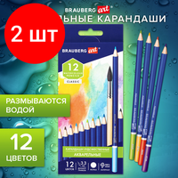 Купить Комплект 2 шт, Карандаши художественные цветные акварельные BRAUBERG ART CLASSIC, 12 цветов, грифель 3.3 мм, 181529 с доставкой по всей России.