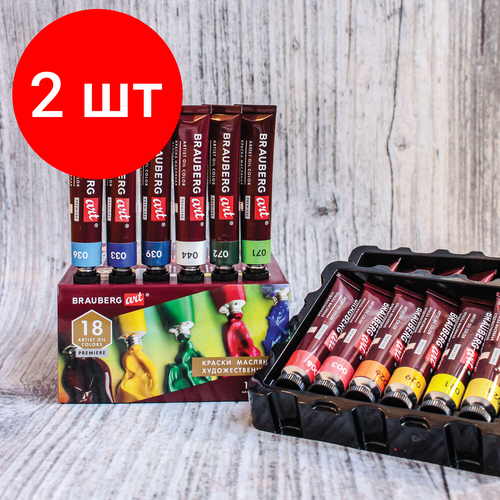 Купить Комплект 2 шт, Краски масляные художественные BRAUBERG ART PREMIERE, 18 цв по 22 мл, проф. серия, в тубах, 191459 с доставкой по всей России.