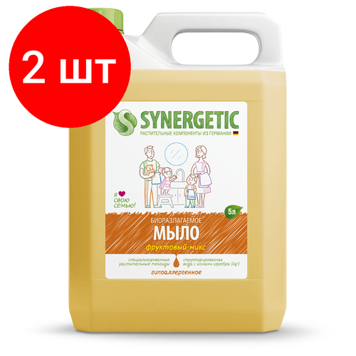 Комплект 2 шт, Мыло жидкое Synergetic «Фруктовый микс», канистра, 5л: сравнение цен, характеристики, фото, актуальное наличие и цены.