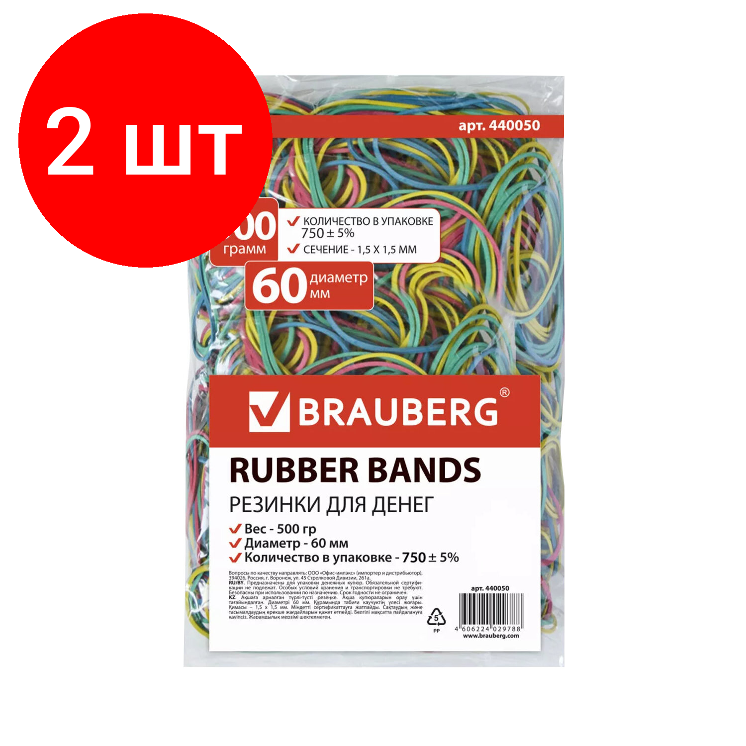 Комплект 2 шт, Резинки банковские универсальные диаметром 60 мм, BRAUBERG 500 г, цветные, натуральный каучук, 440050: сравнение цен, характеристики, фото, актуальное наличие и цены.