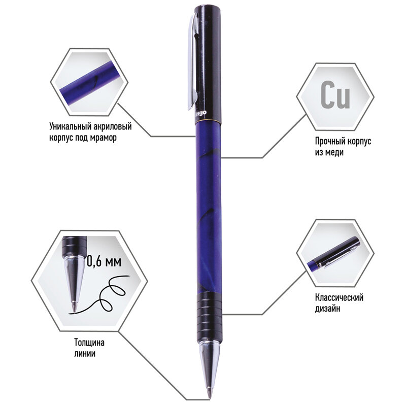 Диаметр ручки 9 Длина письма 500 Толщина линии 0,5 Код сменного стержня 231604 Наличие штрихкода на ед. товара есть Отделка корпуса под мрамор Футляр пластиковый Диаметр пишущего узла 0,7 Цвет корпуса синий Цвет чернил синий Материал корпуса акрил Цвет декоративных элементов черный/хром Клип металлический Вид товара ручка шариковая Морозоустойчивость нет Форма корпуса круглая Механизм отсутствует