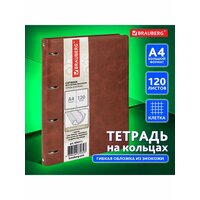 Купить Комплект 2 шт, Тетрадь на кольцах большая А4 (240х310 мм), 120 листов, под кожу, клетка, BRAUBERG «Main», коричневый, 404511 с доставкой по всей России.