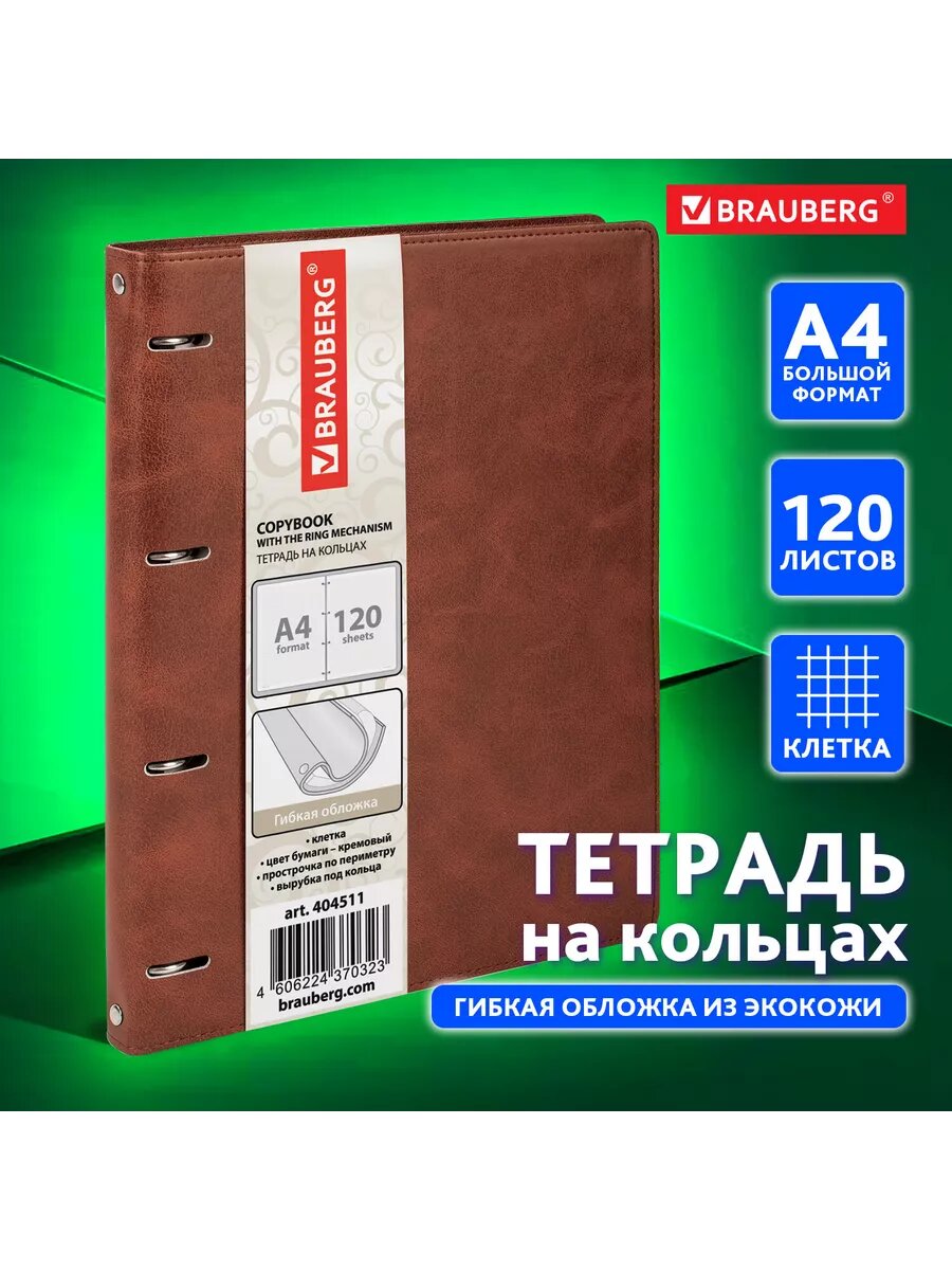 Комплект 2 шт, Тетрадь на кольцах большая А4 (240х310 мм), 120 листов, под кожу, клетка, BRAUBERG «Main», коричневый, 404511: сравнение цен, характеристики, фото, актуальное наличие и цены.