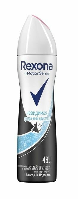 Внимание! Товар продается комплектом:[Дезодорант-антиперспирант Rexona аэрозоль Прозрачный кристалл 150 мл] X 2 шт.