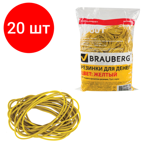 Комплект 20 шт, Резинки банковские универсальные диаметром 60 мм, BRAUBERG 1000 г, желтые, натуральный каучук, 440104: сравнение цен, характеристики, фото, актуальное наличие и цены.