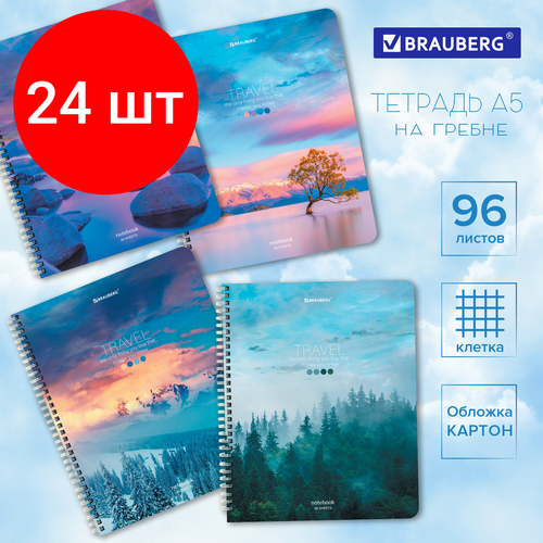 Комплект 24 шт, Тетрадь А5, 96 л, BRAUBERG, гребень, клетка, «Travel», 404426: сравнение цен, характеристики, фото, актуальное наличие и цены.