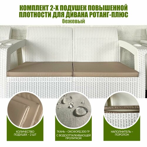 Купить Комплект 2х подушек повышенной плотности для двухместного дивана ротанг-плюс Альтернатива, бежевые без канта с доставкой по всей России. Комплект 2х подушек повышенной плотности для двухместного дивана ротанг-плюс Альтернатива, бежевые без канта: сравнение цен, характеристики, фото, актуальное наличие и цены.