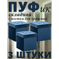 Комплект 3 Пуфа складных с крышкой PLUTO, с местом для хранения, Велюр, Дарк Блю, 38x38x38 см.: сравнение цен, характеристики, фото, актуальное наличие и цены.