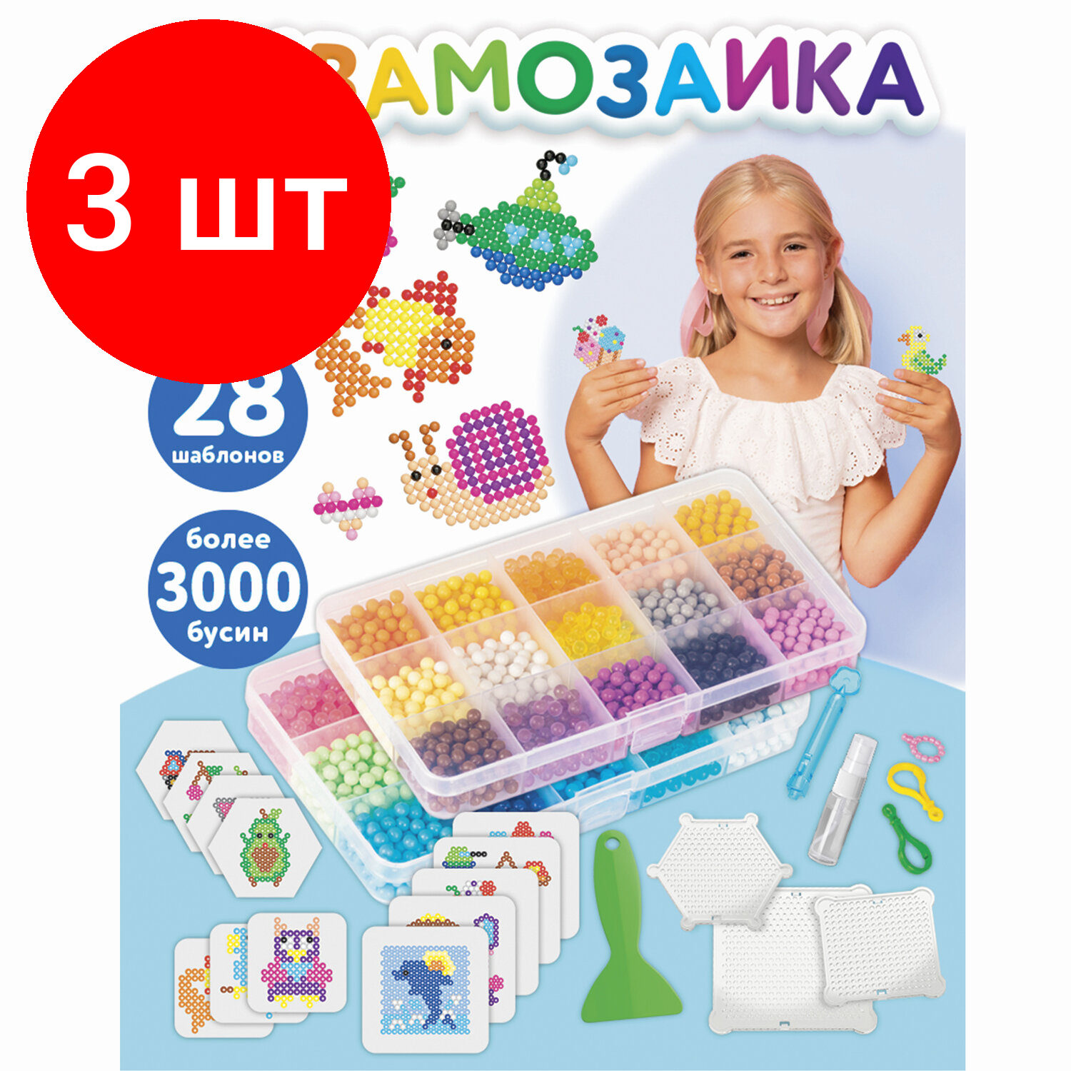 Внимание! Товар продается комплектом:[Аквамозаика, 30 цветов, 3000 бусин, в колорбоксе, юнландия, 663780] X 3 шт. Аквамозаика юнландия - это набор специальных бусин для создания картинок по трафаретам, входящим в набор. Бусины склеиваются между собой, если побрызгать на них обычной водой. Аквамозаика развивает у ребёнка усидчивость, аккуратность, креативное мышление.