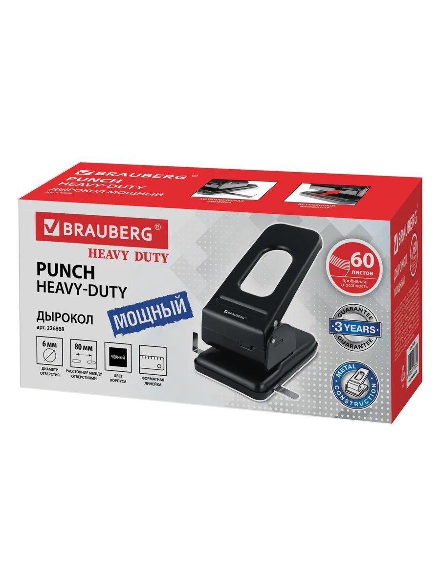 Внимание! Товар продается комплектом:[Дырокол металлический мощный BRAUBERG "Heavy duty", до 60 листов, черный, 226868] X 3 шт. Дырокол BRAUBERG "Heavy duty" – это необходимый офисный предмет, с помощью которого можно аккуратно пробивать отверстия в бумаге и затем подшивать документы в папку. Предназначен для перфорации большого объема бумажных листов.