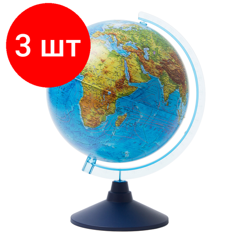 Внимание! Товар продается комплектом:[Глобус физический Globen, 25см, на круглой подставке] X 3 шт. Глобус с физической картой мира пригодится ребёнку для изучения окружающего мира и географии. Размер глобуса 25 см, достаточно крупный с хорошо читаемыми надписями. Глобус выполнен в классической цветовой гамме – он станет не только верным помощником в учебе, но и стильным элементом комнаты школьника. Глобус упакован в фирменную подарочную коробку.