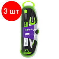 Купить Комплект 3 шт, Готовальня Berlingo «Optimum», 5 предметов, циркуль 135мм, пластиковый футляр, зеленый с доставкой по всей России.