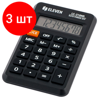 Купить Комплект 3 шт, Калькулятор карманный Eleven LC-310NR, 8 разрядов, питание от батарейки, 69*114*14мм, черный с доставкой по всей России.