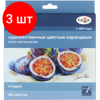 Купить Комплект 3 шт, Карандаши цветные художественные Гамма «Студия», 48цв, заточен, картон. упаковка с доставкой по всей России.