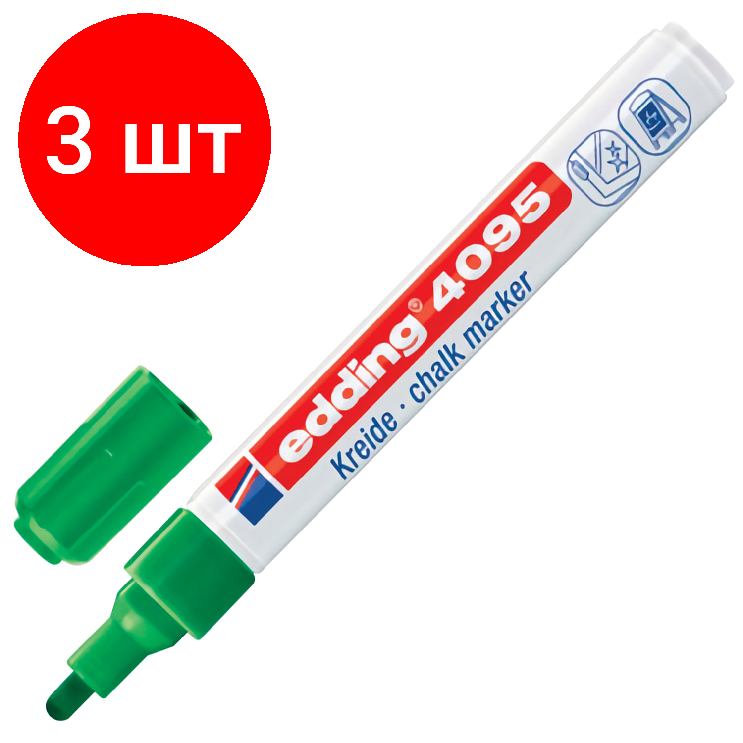 Комплект 3 шт, Маркер меловой EDDING 4095, 2-3 мм, зеленый, сухостираемый, для гладких поверхностей, E-4095/4: сравнение цен, характеристики, фото, актуальное наличие и цены.