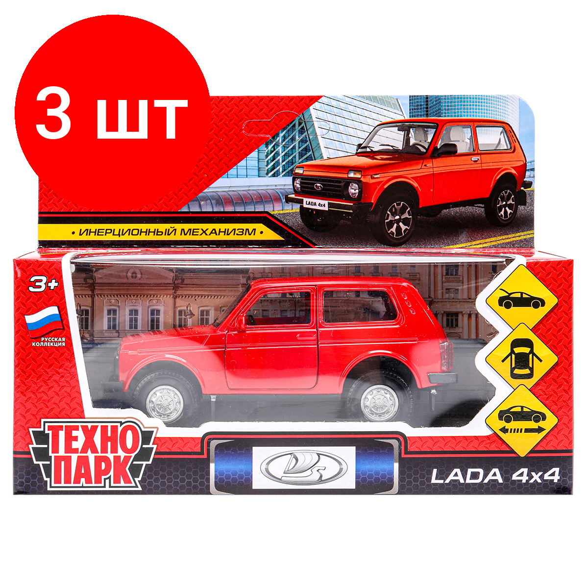 Купить Комплект 3 шт, Машина игрушечная Технопарк «Lada 4×4», LADA, металл, 12см, красный, инерционная, с подвижными элементами с доставкой по всей России.