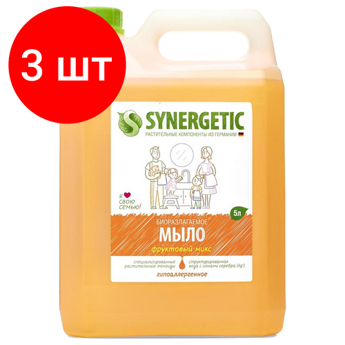 Купить Комплект 3 шт, Мыло жидкое 5л SYNERGETIC «Фруктовый микс», гипоаллергенное, биоразлагаемое, ш/к 5843, 105502 с доставкой по всей России.