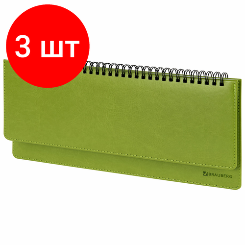Внимание! Товар продаётся только в этом комплекте: [Планинг настольный недатированный (305x140 мм) BRAUBERG "Rainbow", кожзам, 60 л, зеленый, 111702] X 3 шт. Если в карточке указано другое, ориентируйтесь на информацию выше. Недатированный планинг BRAUBERG серии "Raindow" с яркой обложкой предназначен для энергичных людей, любящих нестандартные подходы к решению поставленных задач.