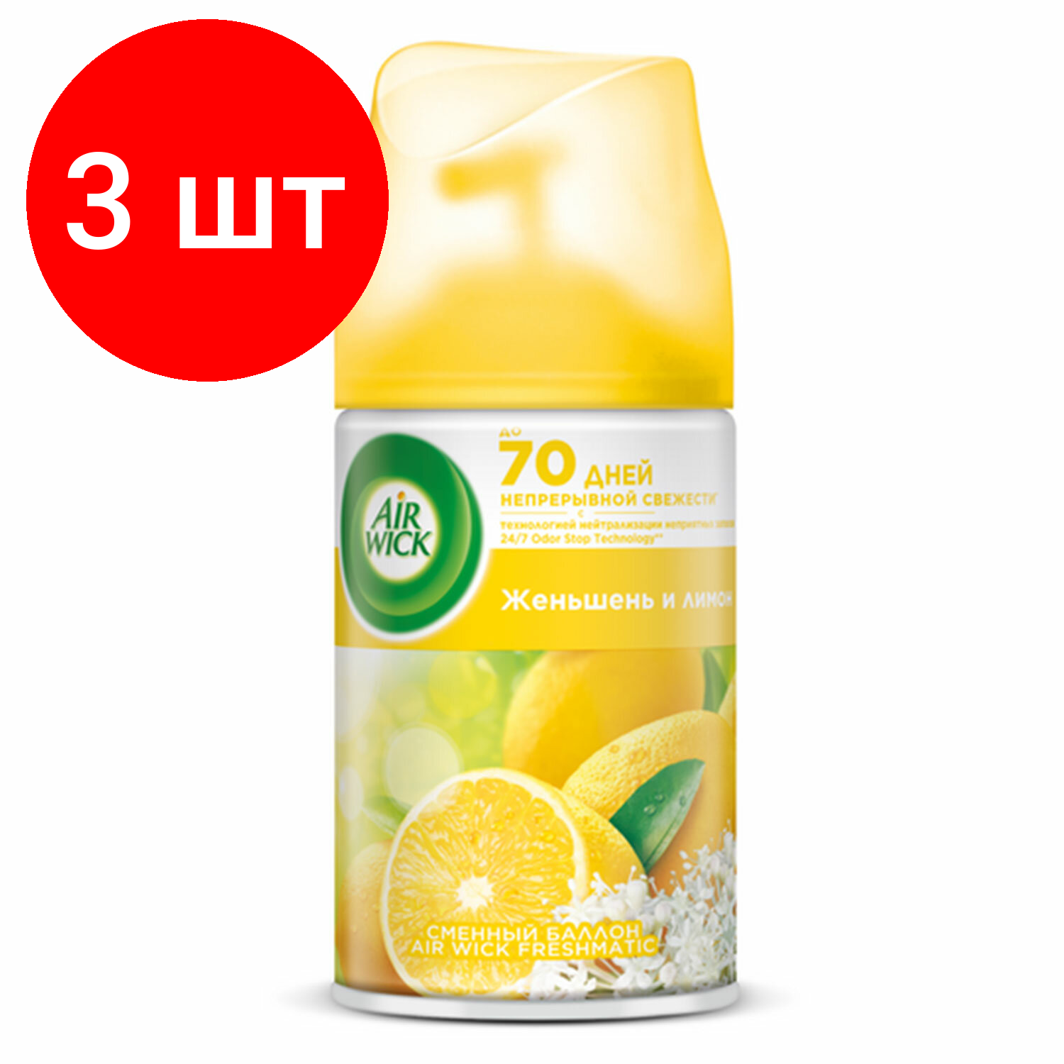 Купить Air Wick Сменный баллон для освежителя воздуха Freshmatic Женьшень и лимон 250 мл — 3 шт с доставкой по всей России.