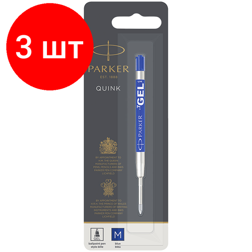Комплект 3 шт, Стержень гелевый Parker «Gel Ball Point» синий, 98мм, 0.7мм, блистер