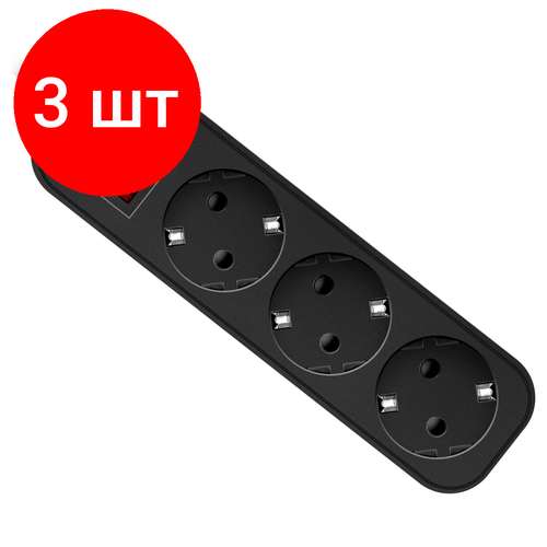 Комплект 3 шт, Удлинитель Defender G330, 3 розетки, с заземлением, выключатель, 3м, черный