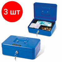 Комплект 3 шт, Ящик для денег, ценностей, документов, печатей, 90х180х250 мм, ключевой замок, синий, BRAUBERG, 290335: сравнение цен, характеристики, фото, актуальное наличие и цены.
