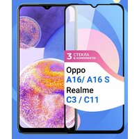 Купить Комплект 3 шт. Защитное стекло Глянцевое на Realme C11 / Realme C3 / Oppo A16 / A16S / Противоударное олеофобное Реалми с доставкой по всей России.