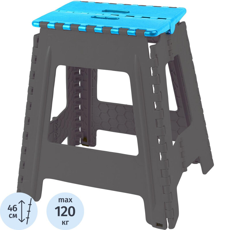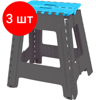Купить Комплект 3 штук, Стремянка -табурет пластик большая складная Color-X серо-голубая с доставкой по всей России.