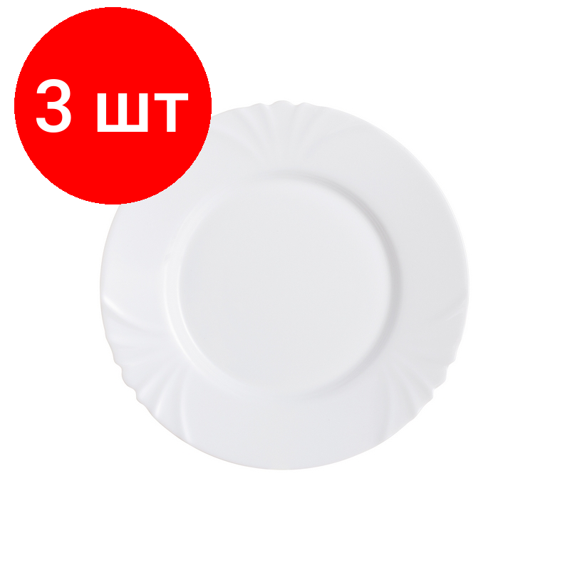 Внимание! Товар продается комплектом:[Тарелка кадикс 25см (H4132)] X 3 шт. Тарелка обеденная белая из серии Luminarc Cadix. Диаметр: 25 см. Материал: ударопрочное, закаленное стекло, способное выдерживать значительные перепады температуры. Не нуждается в особо бережном уходе и подходит для использования в посудомоечной машине и СВЧ. Благодаря простому и универсальному дизайну, тарелка может использоваться как в сфере гостинично-ресторанного бизнеса, так и дома.