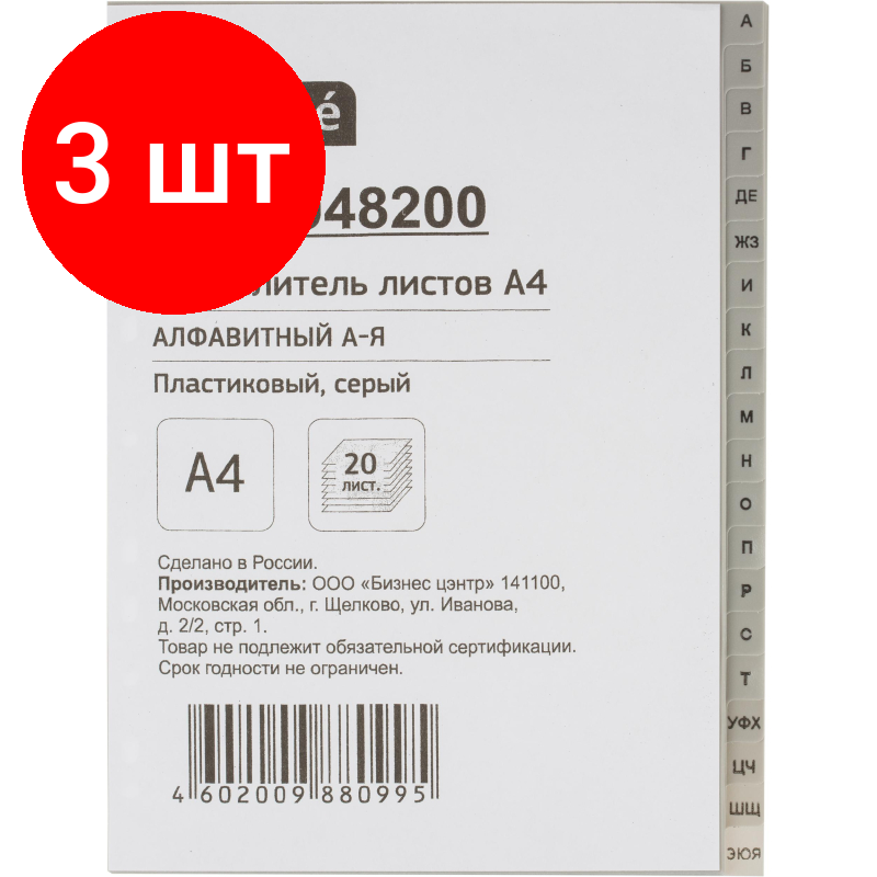 Комплект 3 упаковок, Разделитель листов из сер. пласт. алфавит А-Я , А4, 20 разделов: сравнение цен, характеристики, фото, актуальное наличие и цены.