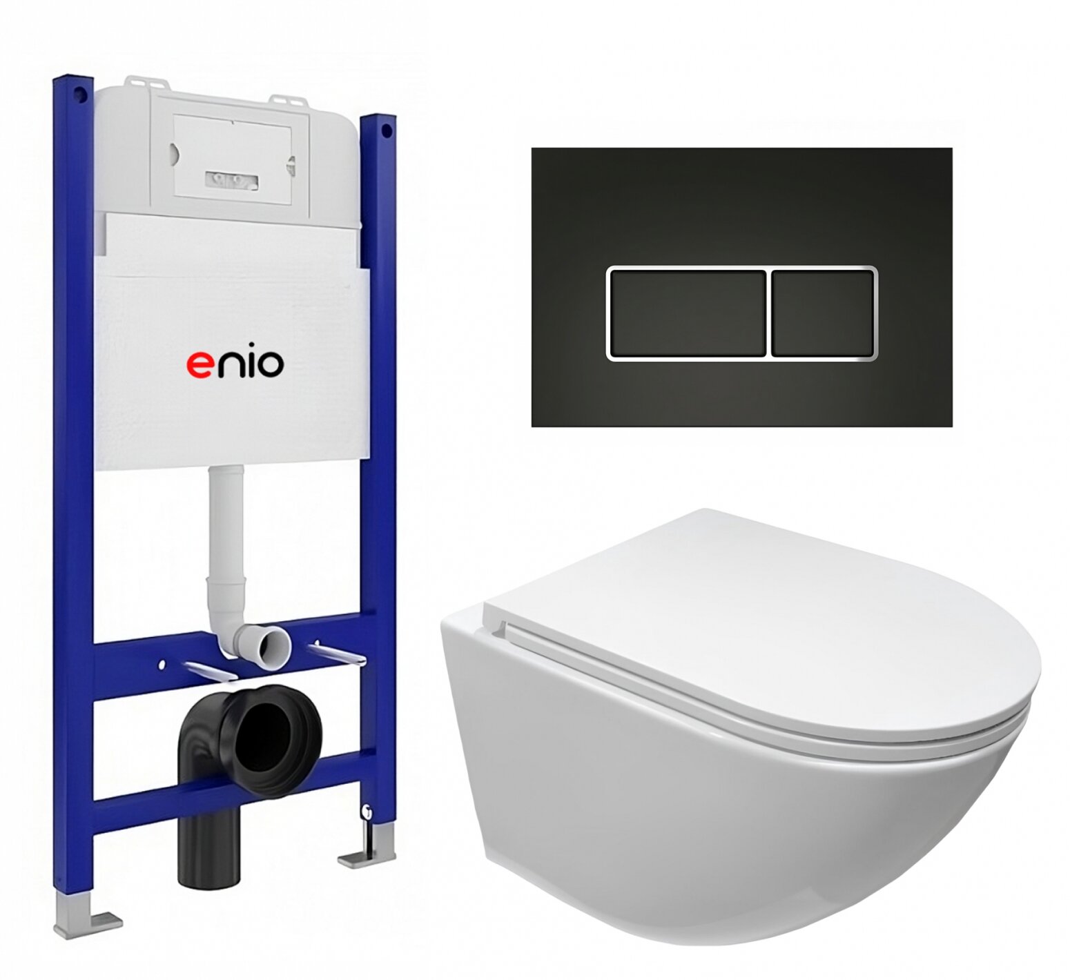 Комплект 3 в 1 инсталляция Enio Tecnico 50 EN8050050 + Подвесной безободковый унитаз CeruttiSpa Sella aria CT7183 + кнопка черная матовая, окантовка хром Rettangolo: сравнение цен, характеристики, фото, актуальное наличие и цены.