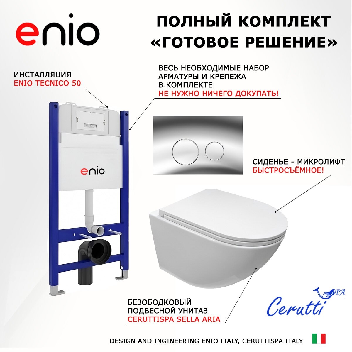Купить Комплект 3 в 1 инсталляция Enio Tecnico 50 EN8050050 + Подвесной безободковый унитаз CeruttiSpa Sella aria CT7183 + кнопка хром Rotondo с доставкой по всей России.