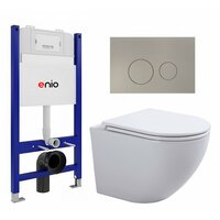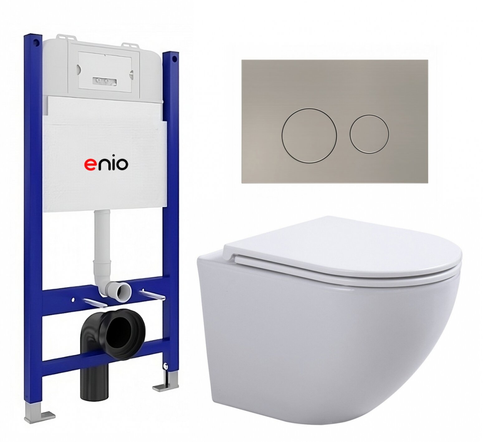 Комплект 3 в 1 инсталляция Enio Tecnico 50 EN8050050 + Подвесной унитаз SinteSi EVI + кнопка матовая нержавеющая сталь Rotondo