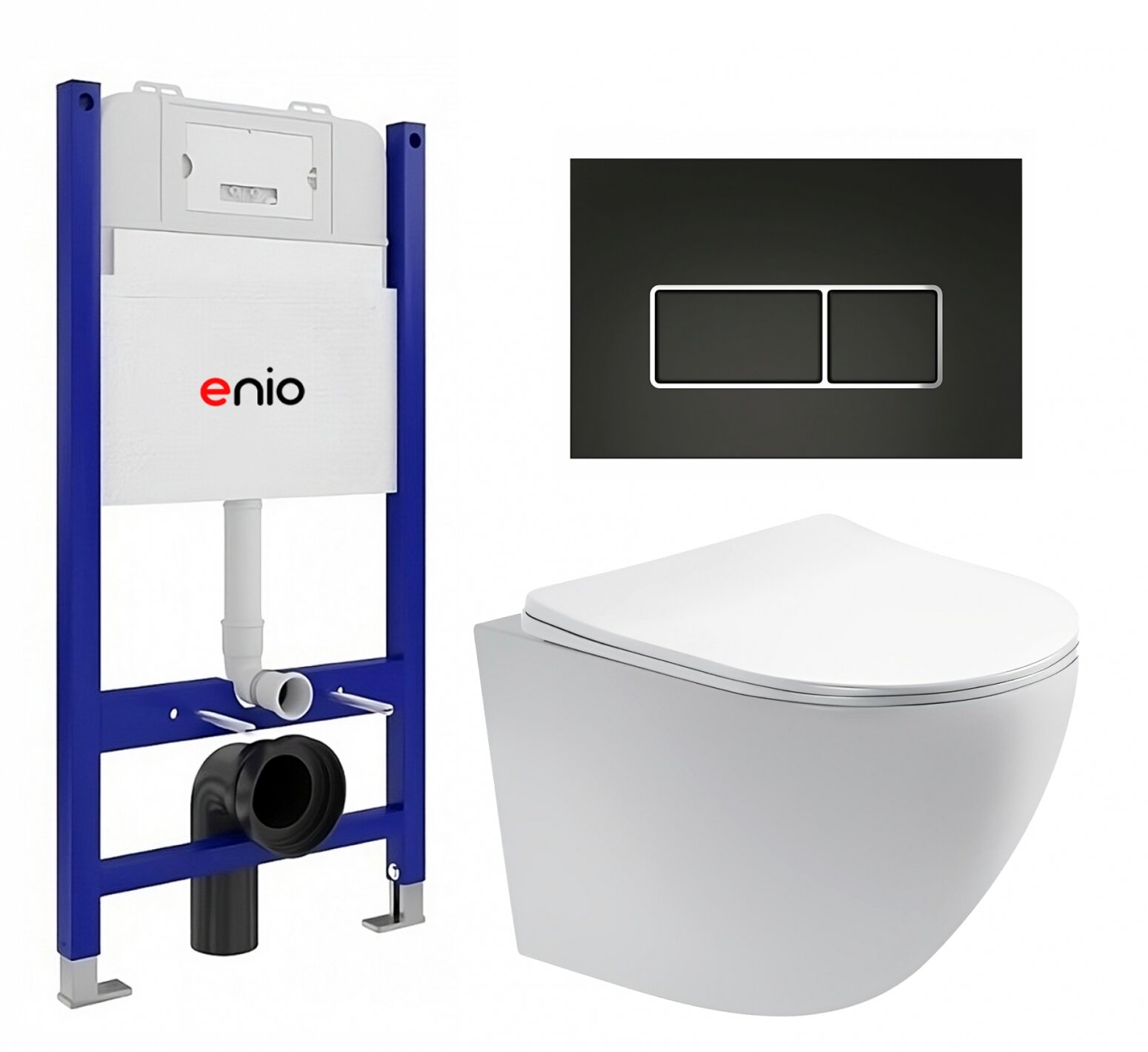 Купить Комплект 3 в 1 инсталляция Enio Tecnico 50 EN8050050 + Унитаз подвесной Акватек Европа AQ1900-00 + кнопка черная матовая, окантовка хром Rettangolo с доставкой по всей России.