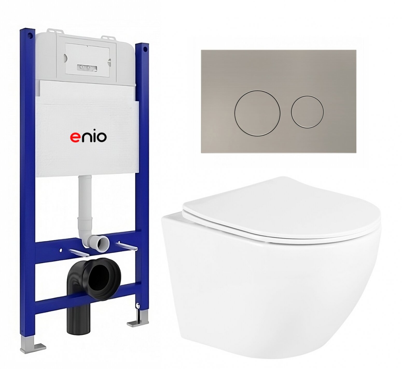 Комплект 3 в 1 инсталляция Enio Tecnico 50 EN8050050 + Унитаз подвесной BelBagno Uno BB3105CHR/SC + кнопка матовая нержавеющая сталь Rotondo: сравнение цен, характеристики, фото, актуальное наличие и цены.