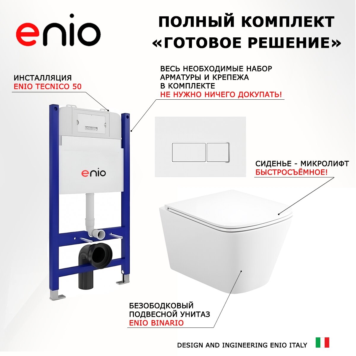 Купить Комплект 3 в 1 инсталляция Enio Tecnico 50 EN8050050 + Унитаз подвесной Enio Binario EN4215896 + кнопка белая, окантовка хром Rettangolo с доставкой по всей России.